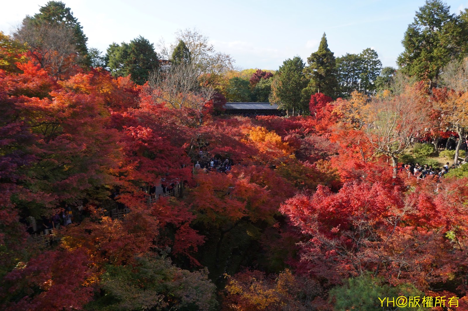 結束大社的行程,我們前往下一站:東福寺。出發前有先做功課,知道東福寺的秋楓頗負盛名,但人潮亦相當多。本以為已先做好心理準備,想不到到現場後,還是被人山人海的盛況嚇到!尤其進入東福寺著名賞楓點通天橋上,人潮簡直媲美市政府跨年...不太建議帶小小孩來,可能會被擠到無法呼吸!!!儘管如此,我們還是鼓起勇氣步入恐怖的人潮,為的就是一睹秋楓的丰采。