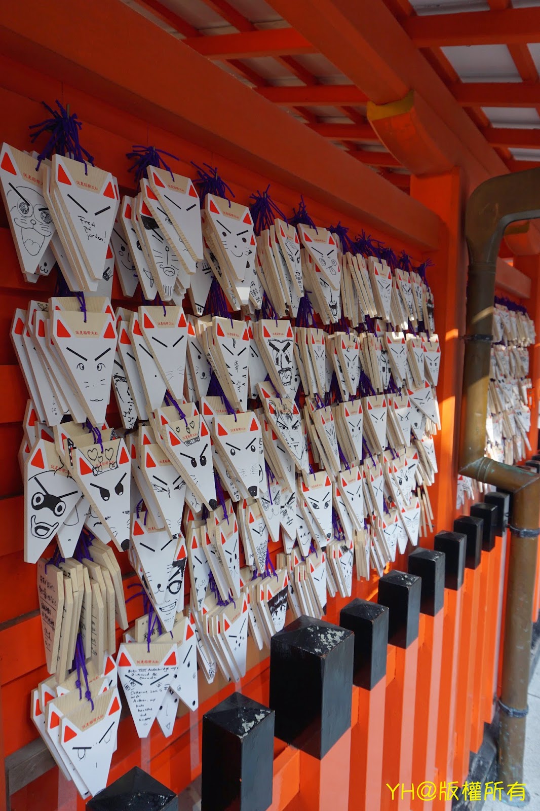 第一站來到伏見稻荷大社,搭京阪電鐵至伏見稻荷站下車後,步行即可到達囉!從車站徒步走到大社途中會經過一條滿熱鬧的商店街,販賣許多有趣好玩的伴手禮,亦有不少小吃可品嚐。