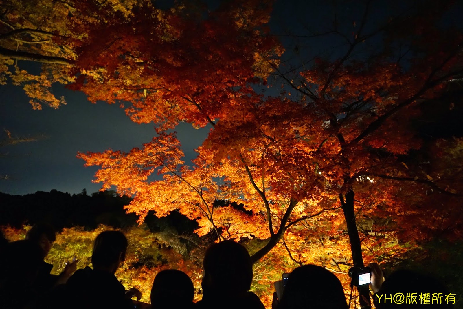 親自來一趟清水寺賞夜楓,果真值回票價!盛開的火紅楓葉搭配著寺方的燈光效果,讓我們有一種來到仙境的感覺。